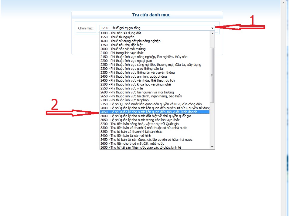 Tiếp theo Anh/Chị chọn tiểu mục 2850 Lệ phí quản lý nhà nước….. và bấm TRA CỨU