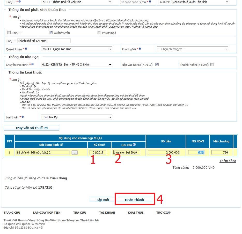 Tiếp theo Anh/Chị điền vào những thông tin sau và bấm HOÀN THÀNH