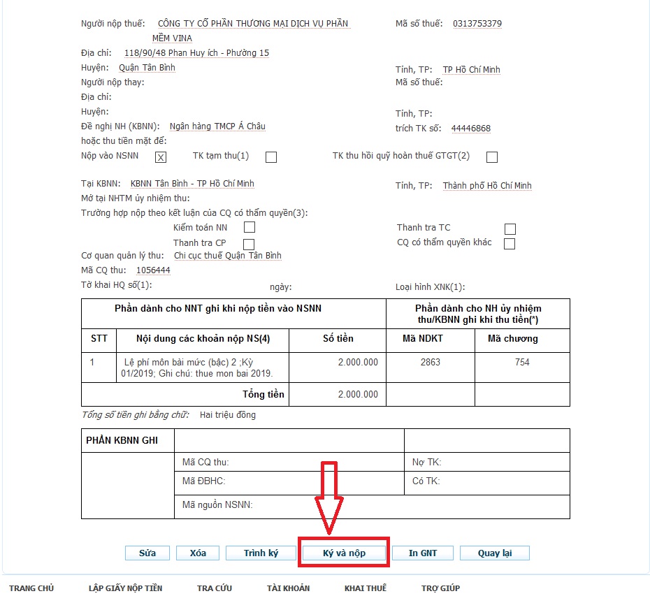 Anh/Chị tiếp tục bấm Ký và Nộp