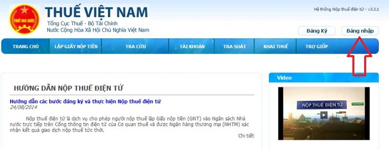 Bước 1: Anh/Chị truy cập vào website nopthue.gdt.gov.vn => bấm đăng nhập và nhập ID + pass